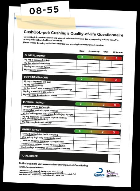 The questionnaire can show the improvement in quality-of -life over time with trilostane, and it is recommended to complete the questionnaire every three months and to share this information with your vet.